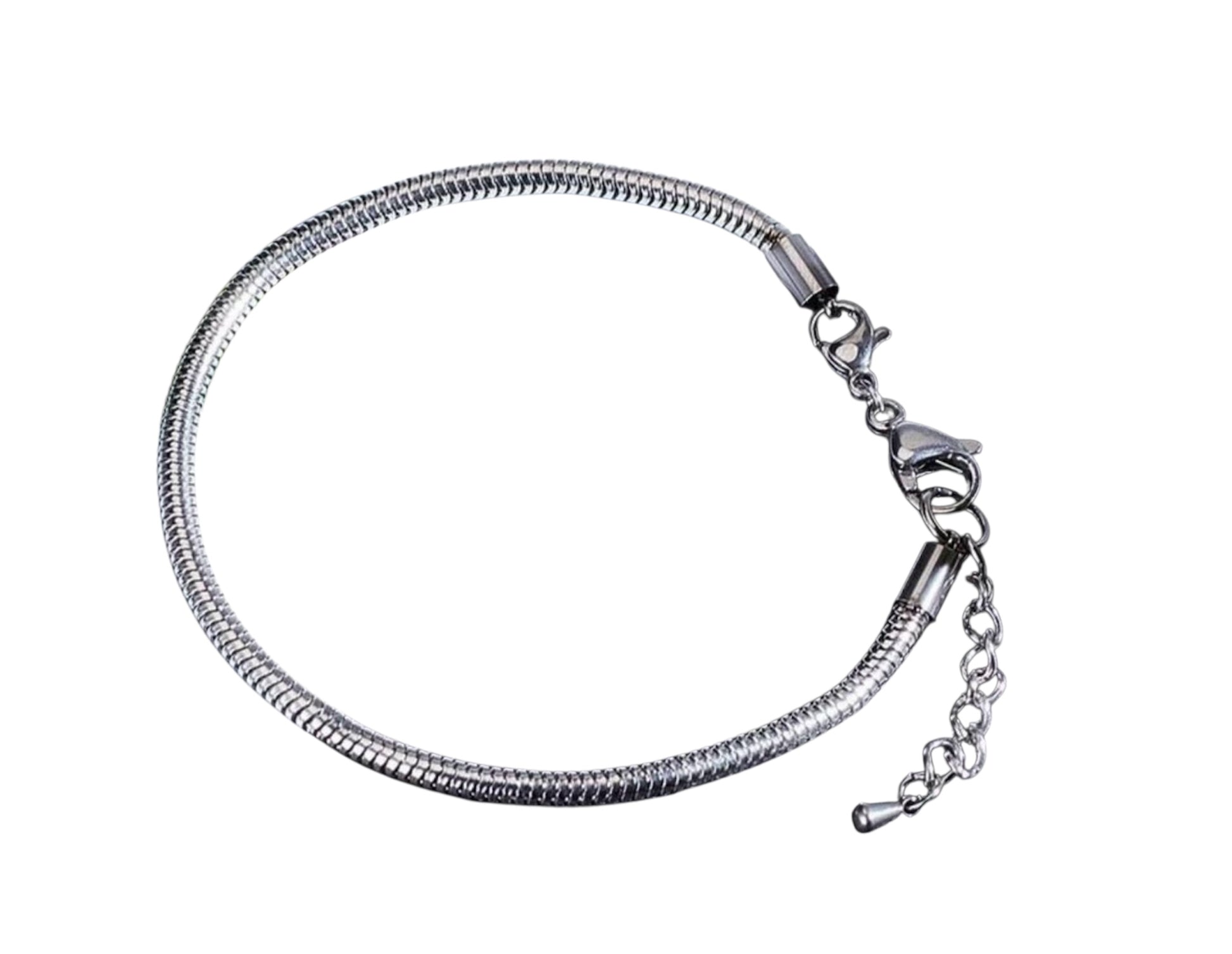 Introducing the Stainless Steel Snake Chain Bracelet, perfect for the fashion-forward individual. Made from high-quality stainless steel, this European style round snake chain bracelet is 195mm long and 3mm thick. Add your own personal touch by adding beads through the lobster clasp. A sleek and versatile piece to elevate any outfit.